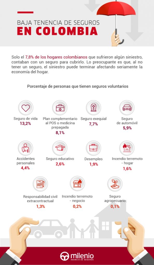 ¿Sabías que, de 11,5 millones de hogares encuestados en Colombia, 3,6 millones sufrieron algún siniestro que revestía cierta gravedad durante los últimos 3 años? ¿Sabías que solo el 7,8% tenía seguros para cubrir el siniestro y que la mayoría de los hogares se vieron afectados económicamente por no tenerlo?